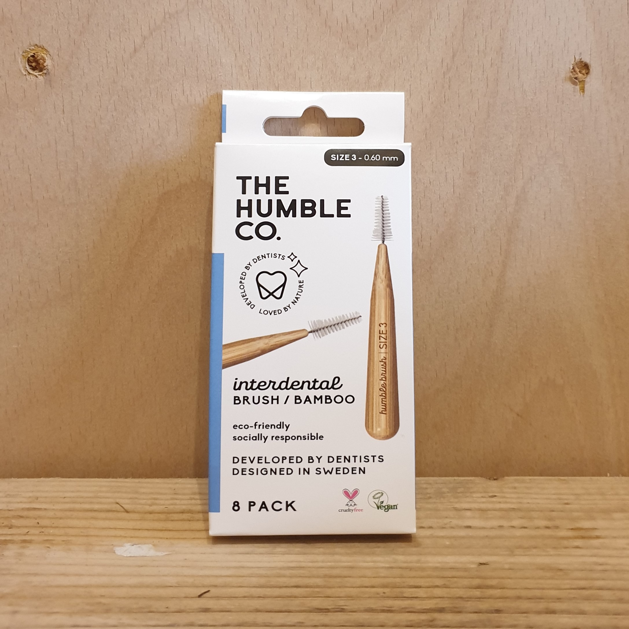 Humble interdental brushes make it easy to clean those hard-to-reach places between your teeth. Made from 100% sustainably grown bamboo and high-quality nylon. Size 3 = 0.6mm bristles.