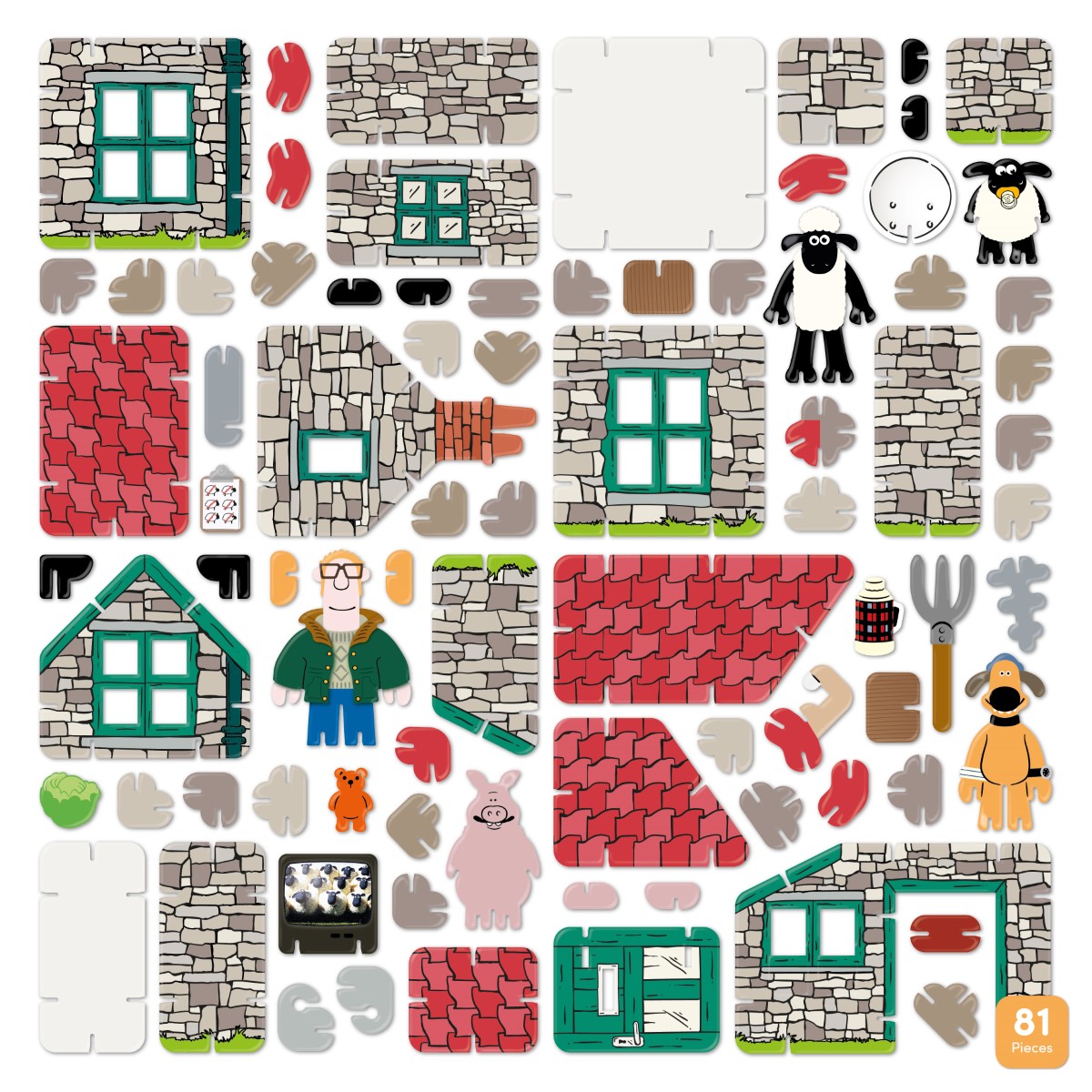 Join in the fun with Shaun the Sheep and his friends at Mossy Bottom Farm but just don’t let the farmer catch you! This 81 pop-out piece set is made from sturdy and sustainable Playboard which connect and slot together to create the pictured scene.