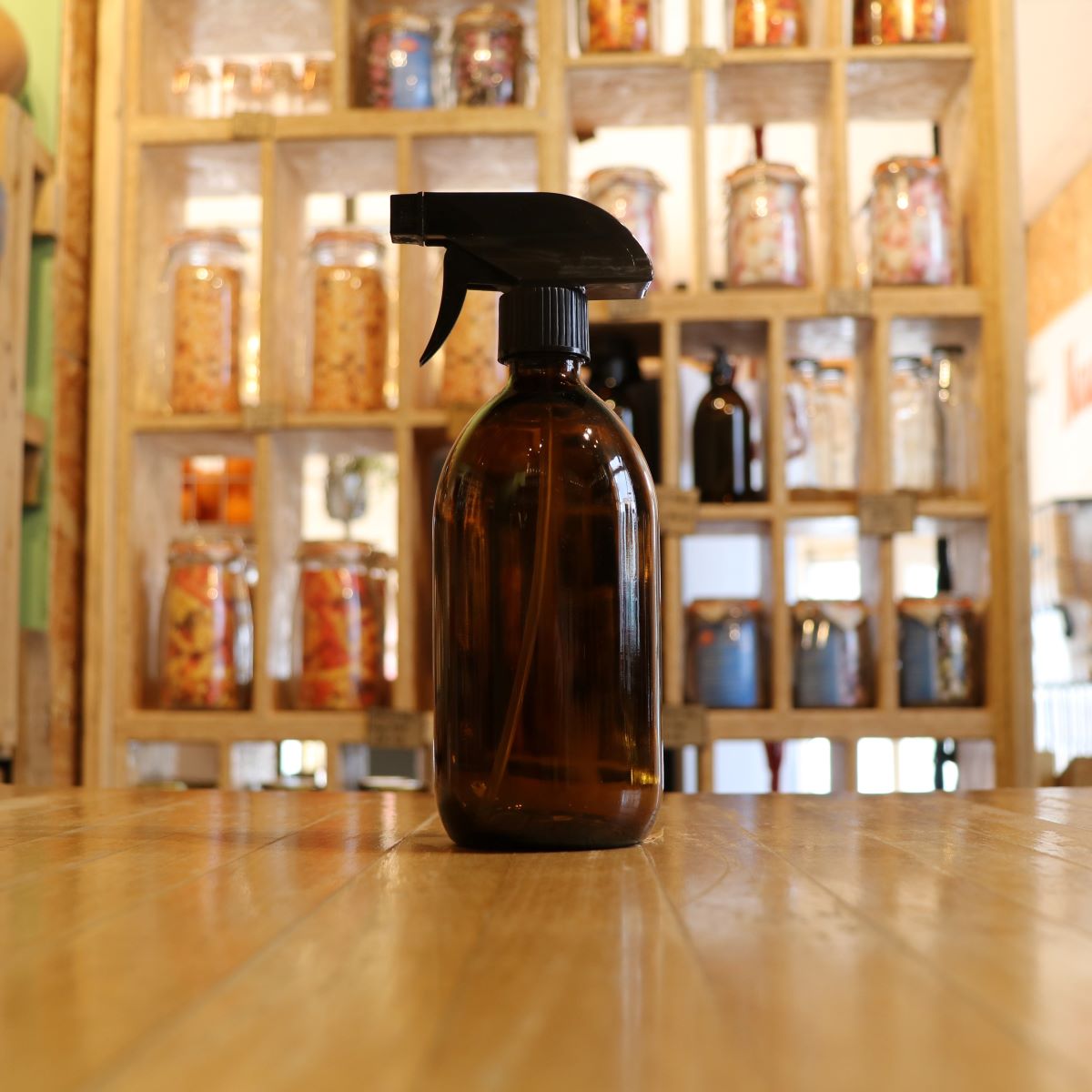 Amber glass bottle ideal for misting house plants of refilling with eco-friendly cleaning products.